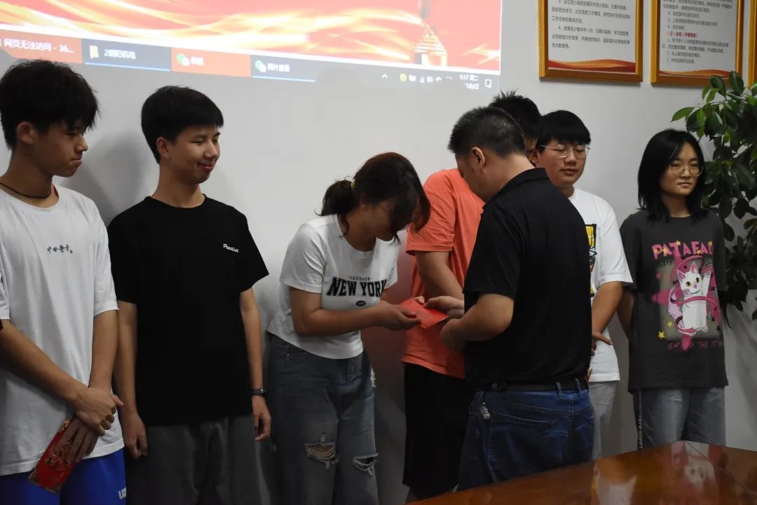 (企業(yè)領(lǐng)導(dǎo)給學(xué)生頒發(fā)獎(jiǎng)學(xué)金)