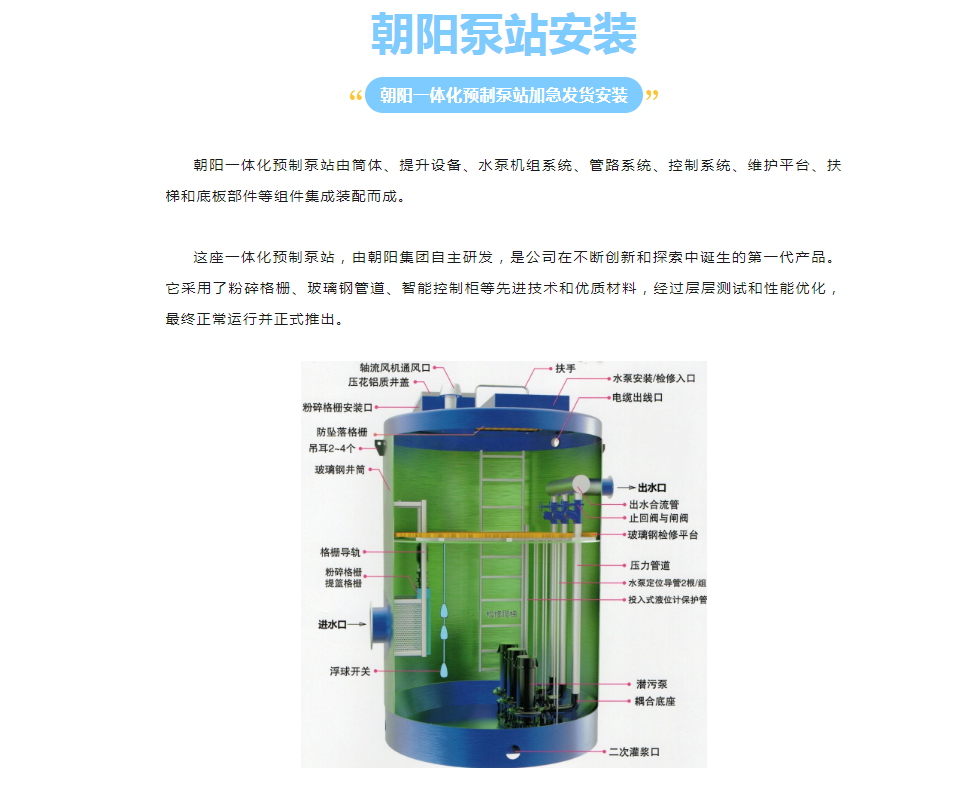 朝陽集團應(yīng)工業(yè)園客戶的具體需求,按時按需完成并發(fā)貨。定制的一體化預(yù)制泵站,在設(shè)計上充分考慮了客戶的實際使用情況,經(jīng)過嚴(yán)格測試和檢驗,確保其性能穩(wěn)定可靠,壽命長久。